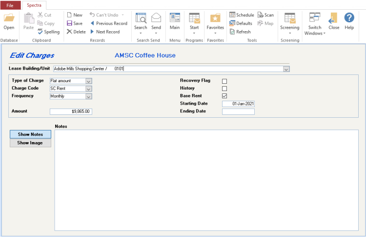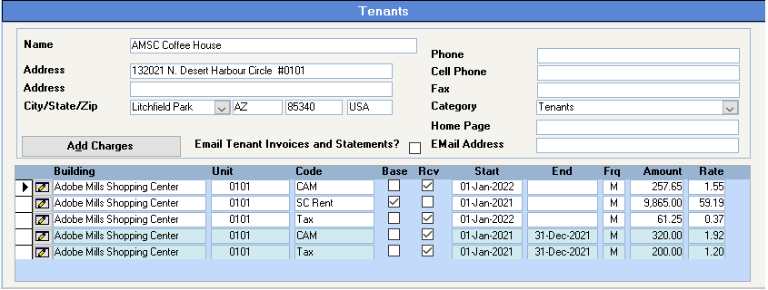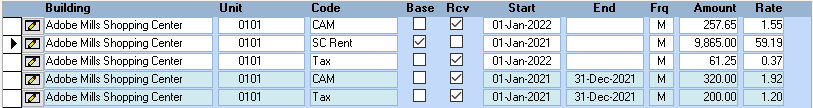 Certain reports will report on Base Rent charges. They will look here for charges that are flagged as “Base Rent” to find charges that should be included in these reports.